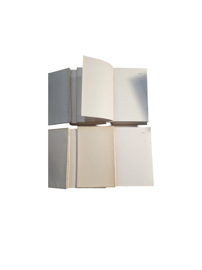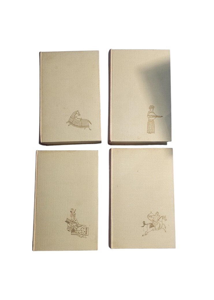 Volumi con leggeri segni d'usura, leggera scucitura della legatura non visibile dall'esterno, lievi macchie del tempo alle copertine, tracce di polvere come da fotografie allegate