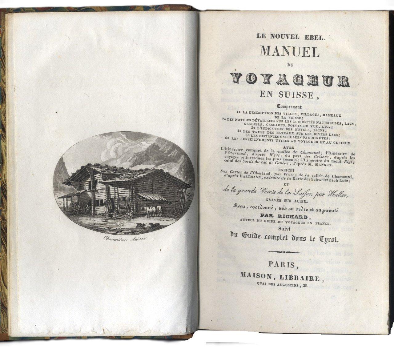 Le Nouvel Ebel. Manuel du Voyageur en Suisse, comprenant la Description des villages, villes. hameaux de la Suisse, des Notices détaillées sur les curiosités naturelles, lacs, glaciers, cascades, points de vue, etc. Revu, coordonné, mis en ordre et augmenté par Richard.