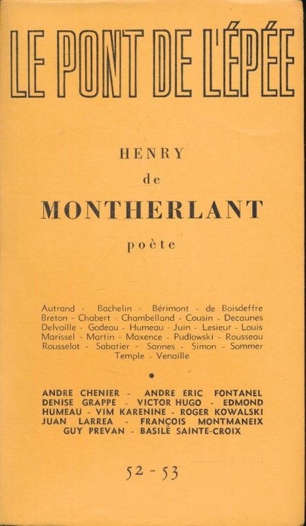 Le pont de l'épée n°52 - 53. Henry de Montherlant Poète