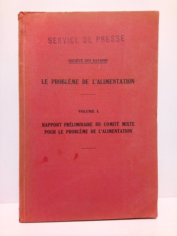 Le problème de l'alimentation (Vol. 1.): Rapport préliminaire du Comité Mixte Pour le Probème de l'alimentation (Communiqué à l'Assemblée, au Conseil rt aux Membres de la Société. Genève, le 24 de juin 1936)
