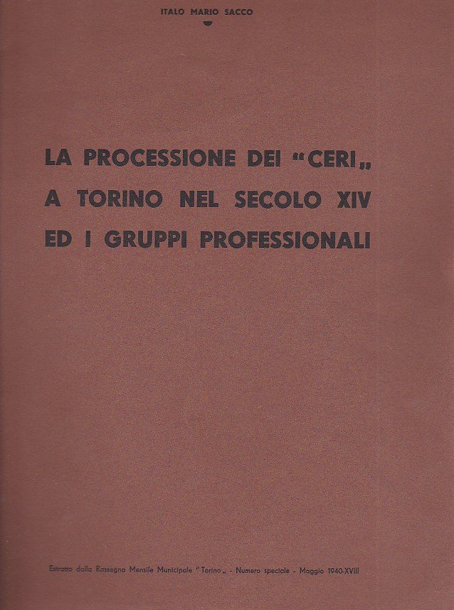 Le processioni dei 'ceri' a Torino nel secolo XIV ed i gruppi professionali. Estratto dalla Rivista Municipale 'Torino'. Numero speciale. Maggio 1940