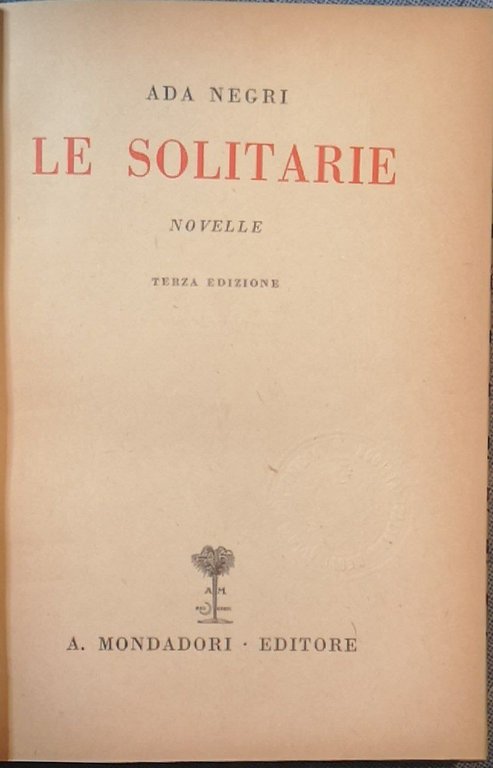 Le solitarie: novelle | Libros antiguos y modernos | Negri Ada