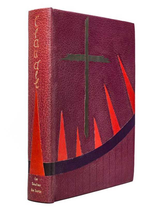 Tirage à 210 exemplaires, un des 38 exemplaires sur Vélin de Rives, contenant l'original d'un bandeau, et une suite des vingt hors-texte et in-texte numérotés de 21 à 58 (n° 56), signé par Yves Brayer et Paul Claudel, 1 vol. grand in-4 reliure plein maroquin bordeaux sous étui, dos et plat mosaïqué, reliure signée de B. Lamolle, Les Editions Coulouma, Paris, 1951, 247 pp. avec la suite en couleurs des 20 in-texte et hors-texte, accompagnée de la décomposition des couleurs d'un des bois Bon exemplaire du second papier (après 20 hollande), signé par Paul Claudel et Yves Brayer, bien complet de l'aquarelle originale d'un bandeau, par Yves Brayer. Bon état (dos lég. passé, rares et très lég. rouss. essentiellement sur tranche, étui frotté, très bon état par ailleurs) pour cet ouvrage relié de manière originale, dans un style abstrait et naïf.