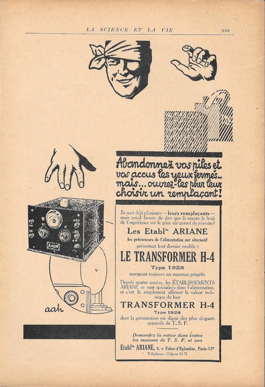 Le Transformer H4, etabl.ts Ariane- Advertising 1928