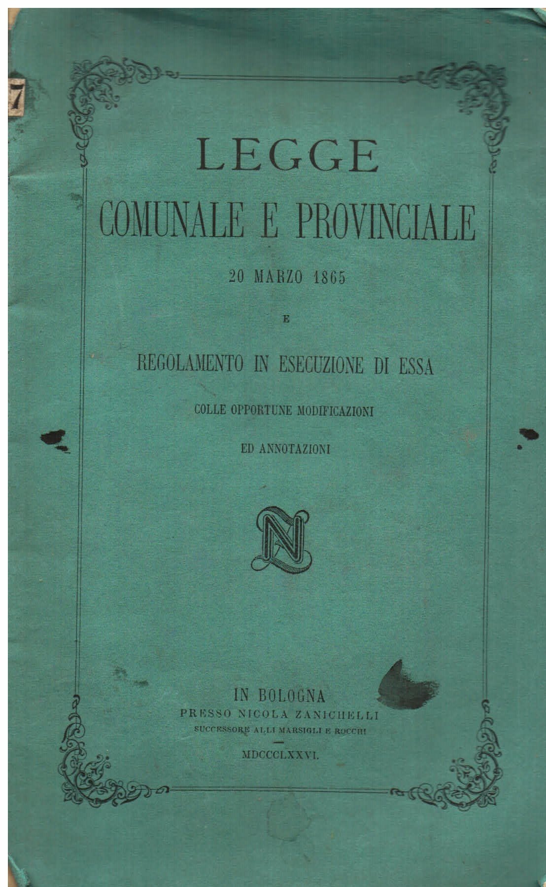 Legge comunale e provinciale 20 marzo 1865 e regolamento in esecuzione di essa colle opportune modificazioni ed annotazioni | Libros antiguos y modernos |