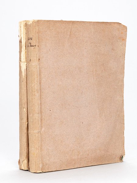 D'après les seules dispositions en vigueur, rangées dans un ordre méthodique, Avec des explications puisées dans les motifs des lois, dans les décisions ministérielles, dans les circulaires administratives, et sur-tout dans les arrêts de la Cour de Cassation, Seconde édition, 2 vol. in-4 br., Chez l'Auteur, Paris, Vol. I : Juillet 1812, 2 ff., viii-296 pp. et 1 f. n. ch. ; Vol. II : Mars 1813, 2 ff., pp. ix-xv, pp. 297-568 Comme il est précisé au verso du faux-titre, "cette législation est la seconde édition, mise au courant, de l'ouvrage publié en avril 1810, sous le titre de Code des Douanes". Rare et important ouvrage bien complet des deux livraisons, qui détaille le fonctionnement des douanes sous l'Empire napoléonien. Organisée militairement, la douane française disposait alors d'une puissance exceptionnelle et bénéficiait de tribunaux d'exception. Un ouvrage clé pour l'histoire de l'Empire. Bon état (petit manque de papier à un dos, très bon état par ailleurs, signé par Dujardin-Sailly).