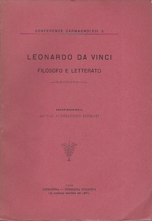 Leonardo da Vinci filosofo e letterato. Conferenza tenuta agli alunni del Regio Liceo - Ginnasio di Carmagnola il 3 dicembre 1904 | Libros antiguos y modernos | Piumati Alessandro