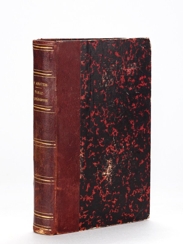 1 vol. in-12 reliure demi-basane mauve, Troisième édition, F. Cournol, Paris, 1865, 2 ff., 234 pp., 1 f. blanc, 2 ff. n. ch., Librairie J.-B. Baillière et Fils, 1875, VIII-206 pp. Bon état pour ce recueil de 2 publications peu communes, d'un côté l'édition originale du travail du Docteur Paul Jolly, grand et précoce dénonciateur des méfaits du tabac et de l'absinthe, et de l'autre l'ouvrage satirique d'Alfred Sirven, dont s'il faut en croire l'ouvrage lui-même a été illustré au bénéfice de "l'abruti de la préface" !
