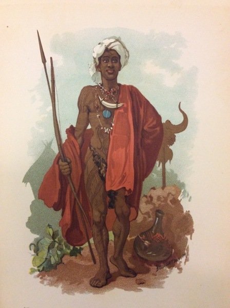 In-8 gr. (mm. 272x182), 2 volumi, mz. pelle mod. con ang., piatti in cartonato ottocentesco, filetti e titolo oro al dorso, pp. (4),554,(2); (4),526,(2); ben illustrato nel testo da ca. 300 inc. su legno (numerosiss. a piena pag.), incluse 2 carte geografiche in bianco e nero, e da 11 tavole a colori, 1 carta geografica a colori a doppia pag. e 1 ritratto di Leopoldo II, fuori testo (Sui frontesp. sono indicate: 5+5 tavole a colori e 3+3 carte geograf.). "Manca" il vol. De Zanzibar au lac Tanganika, di A. Burdo. Qualche lieviss.alone, altrimenti esemplare ben conservato, su carta distinta.