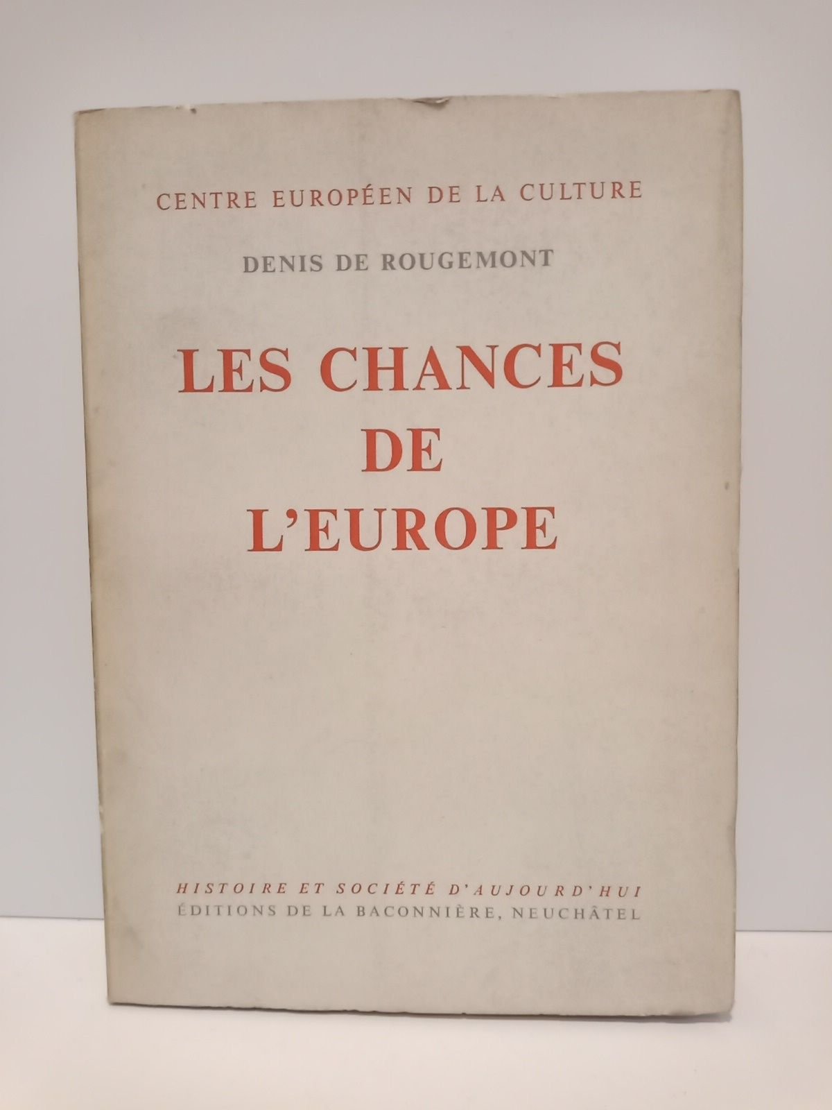 Neuchatel: Eds. de la Baconniere, 1962.- 90 p.; 4º (20,7 x 14,7 cm); Texto en francés.- (Centre Européen de la Culture).* IDEA DE EUROPA EN GENERAL Y UNIÓN EUROPEA