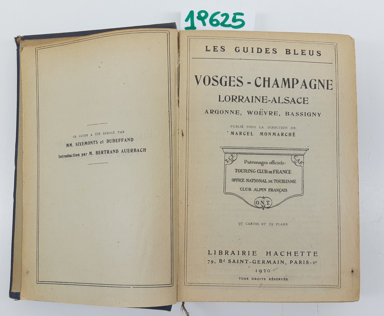 Les guides Blues Vosges Campagne Lorraine Alsace Hachette 1920