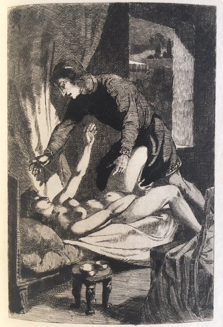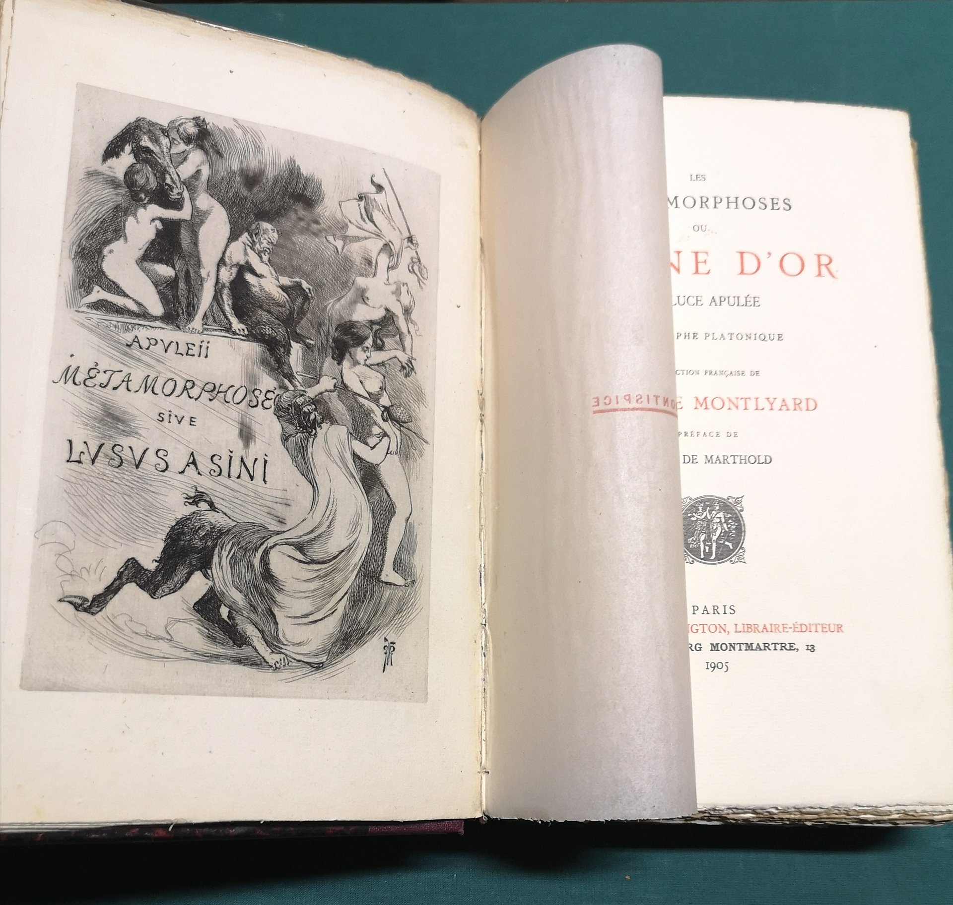 >in-8, pp. (8), XLVIII, 328, leg. poster. m. tela, tit. oro al dorso, cop. edit. cons. Titolo a stampa rossa e nera. Edizione di sole 750 copie numerate (n. 53), su carta greve, vergellata, corredata dell'eccezionale tiratura della doppia suite delle 21 acqueforti impresse in nero e seppia. Il testo è adorno di grandi vignette, capilettera e finaletti incisi su legno in rosso e nero, del medesimo artista Martin Van Marle, disegnatore francese di probabile origine olandese, illustratore di numerose opere classiche e moderne (cfr. Bénézit VIII, 950). Accattivante edizione illustrata del classico capolavoro erotico. Perfetto esempl. a pieni margini, con barbe.