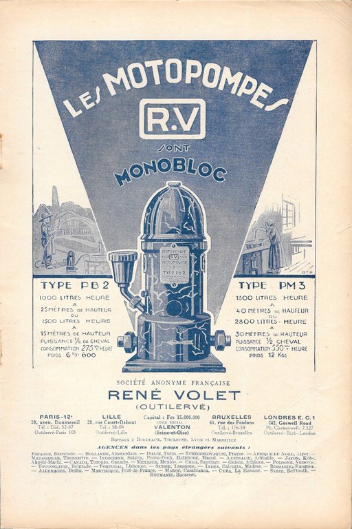 Les Motopompes R.V René Volet - Advertising 1931