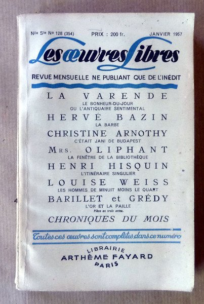 Une revue littéraire de format in 8° de 320 pp.; textes inédits de La Varende; H. Bazin; C. Arnothy; Mrs. Oliphant; H. Bisquin; Louise Weiss; Barillet et Grédy. Bon état. Voir photo.
