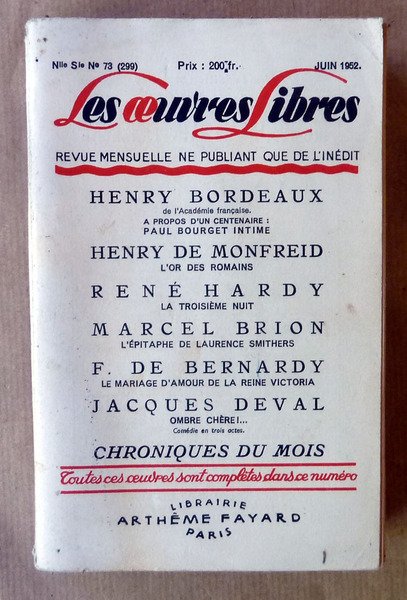 Les Oeuvres Libres. Juin 1952.