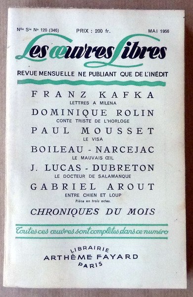 Les Oeuvres Libres. Mai 1956.