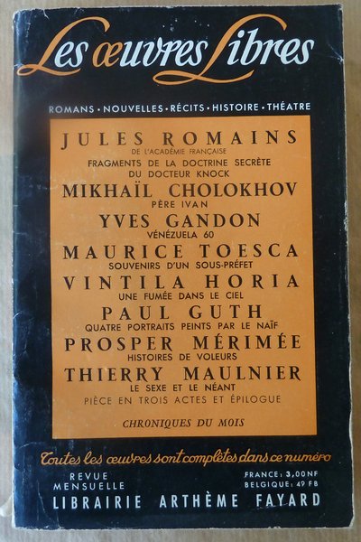 Un volume broché de format in 8° de 288 pp. Bon état; voir photo. Textes inédits de Jules Romain; Cholokhov; Y. Gandon; M. Toesca; Vintila Horia; Guth; Mérimée; T. Maulnier.