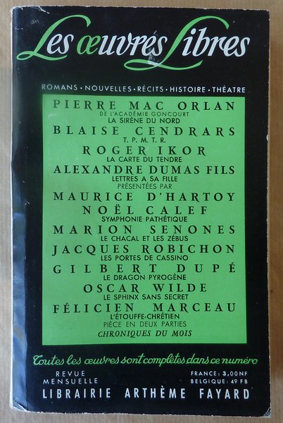 Un volume broché de format in 8° de 288 pp. Bon état. Voir photo. Textes inédits de Mac Orlan; Cendrars; Ikor; Dumas fils; D'Harthoy et Calf; Senones; Robichon; Dupé; Oscar Wilde; F. Marceau.