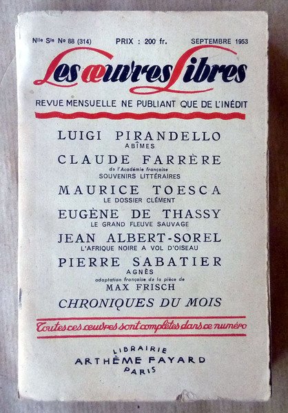 Les Oeuvres Libres. Septembre 1953.
