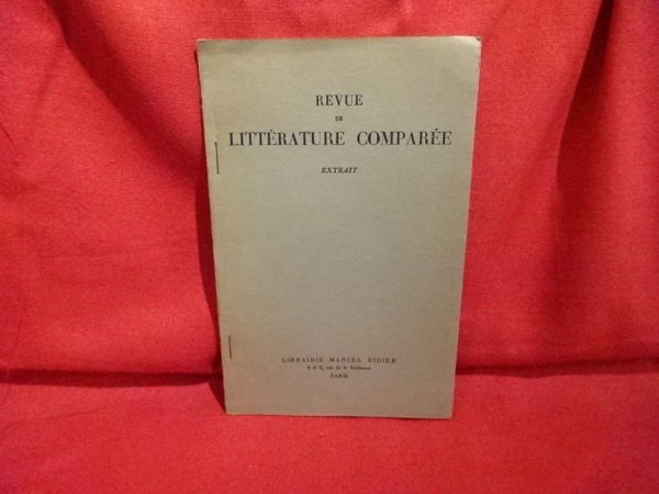 Paris, Librairie Marcel Didier, s.d. (vers 1980); in-8 (152 x 235 mm), 14 pp., couverture, feuille et cahier agrafés. Extrait de la Revue de Littérature comparée. - 22ème année.