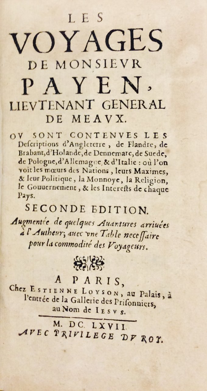 LES VOYAGES DE MONSIEUR PAYEN, LIEUTENANT GENERAL DE MEAUX. - Seconde édition augmentée de quelques avantures arrivées à l'Autheur....