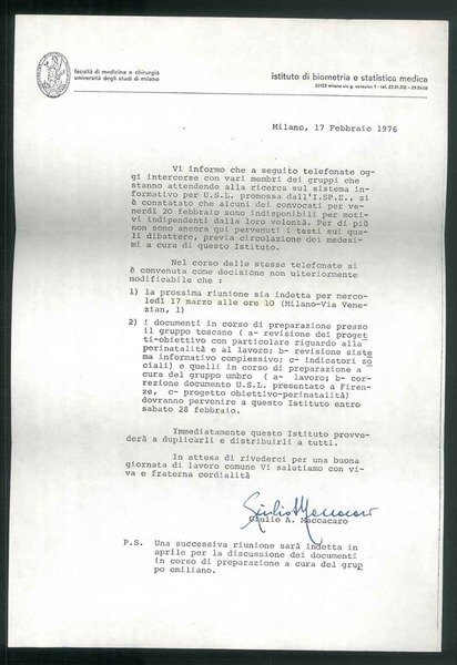 - , su carta intestata Istituto di Biometria e Statisttica Medica