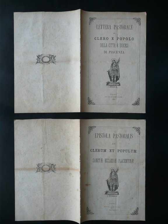Lettera Pastorale al Clero e al Popolo Piacenza 2 Opuscoli Italiano Latino 1876