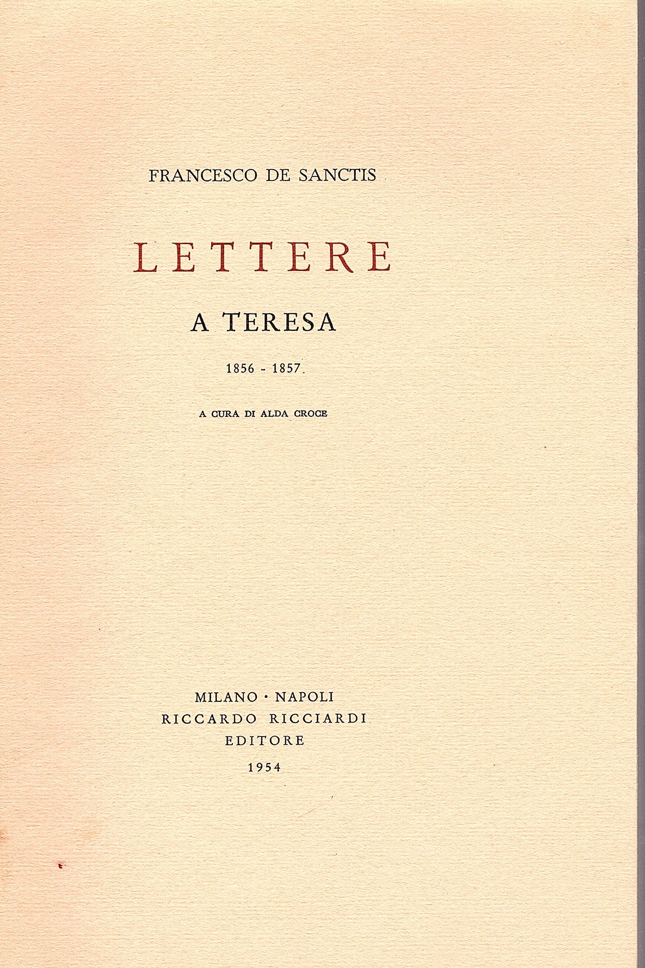 Lettere a Teresa. 1856 - 1857. A cura di Alda Croce | Libros antiguos y modernos | De Sanctis Francesco