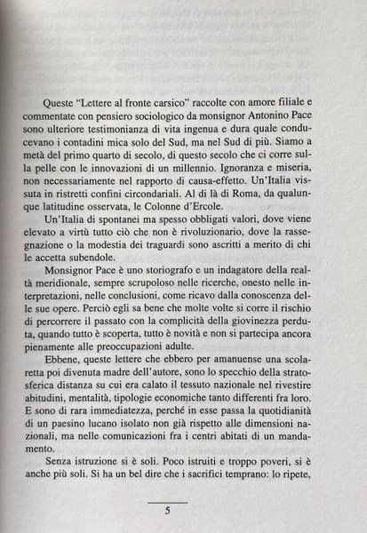 Soggetti: Prima Guerra Mondiale, Storia d'Europa, Novecento, Lettere, Carteggio, Corrispondenza, Soldati, Fronte, Trincea, Famiglia, Contadini, Analfabetismo, Scritti, Italia rurale, Sud, Mezzogiorno, Studi storici, Testimonianze, Documenti, Cronache, Combattimenti, Lucania, Basilicata, Puglia, Sicilia, Campania, Provincia, Difesa, Patria, Valori, Propaganda, Stupore, Armamenti, Monti, Sangue, Malattie, Vita quotidiana, Solidarietà meccanica, Durkheim, Mondo contadino, Arretratezza culturale, Giovani, Ragazzi, Militari, Rapporti città-campagna, Dialetti, Linguaggio, Espressioni dialettali, Comunicazione, Saggi, Libri Vintage Fuori catalogo, Notizie, Istruzione, Sociologia, Mogli, Donne, Figli, Preti, Cappellani, Morte, Feriti, Mutilati, Nemico, Luigi Cadorna, Giustino Fortunato, Vulture, Monticchio, Avanzate, Brigantaggio, Carmine Crocco, Venosa, Rionero, Lucani, Paesani, Russia, Tedeschi, Austria, Austriaci, Nemici, Isonzo, Epistolario, Legami familiari, First world war, Europe history, Twentieth century, Letters, Correspondence, Soldiers, Front, Trench, Family, Peasants, Illiteracy, Writings, Rural Italy, South, Historical studies, Testimonials, Documents, Chronicles, Fights, Sicily, Province, Defense, Homeland, Values, Propaganda, Amazement, Armaments, Mountains, Blood, Diseases, Daily life, Mechanical solidarity, Peasant world, Cultural backwardness, Young people, Boys, Military, Town-country relations, Dialects, Language, Dialect expressions, Communication, Essays, Out of print books, News, Education, Sociology, Wives, Women, Children, Priests, Chaplains, Death, Wounded, Mutilated, Enemy, Advanced, Brigandage, Villagers, Germans, Austrians, Enemies, Letters, Ties family members