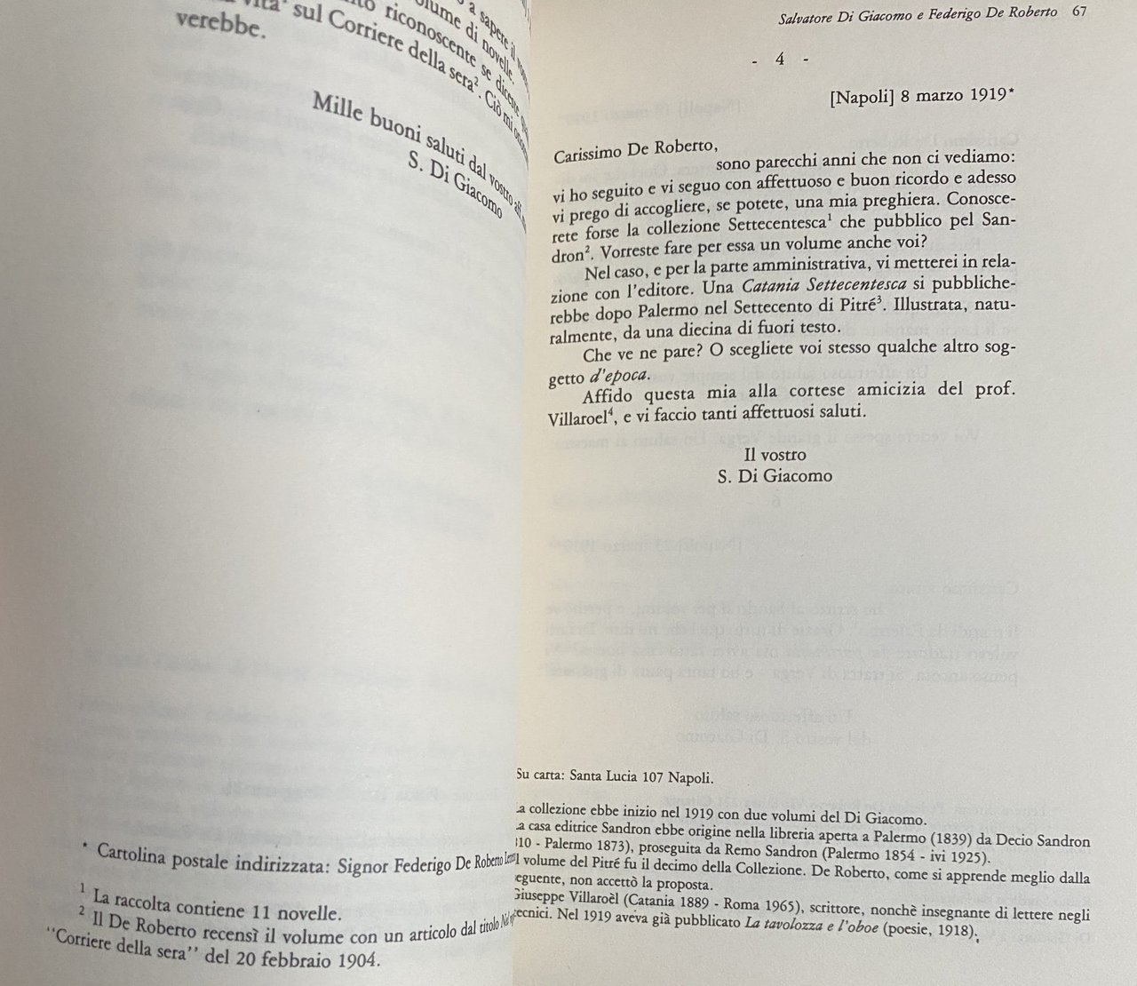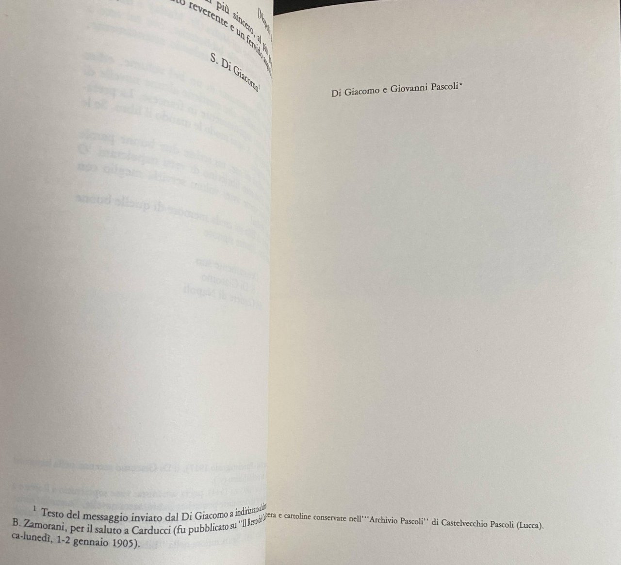 LETTERE DA NAPOLI. SALVATORE DI GIACOMO E I RAPPORTI CON BRACCO, CARDUCCI, CROCE, DE ROBERTO, FOGAZZARO, PASCOLI, VERGA, ZINGARELLI.