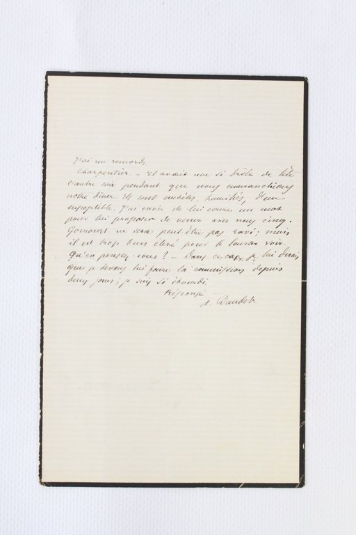Lettre autographe à un membre du groupe littéraire d'Alphonse Daudet, sans doute Émile Zola