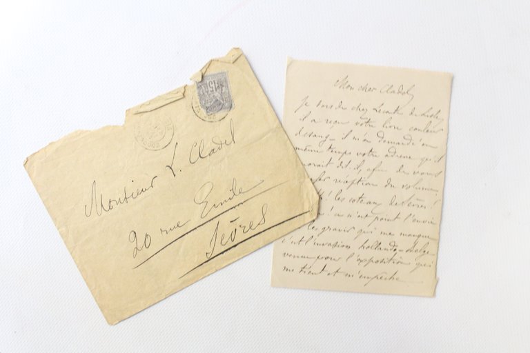 s. l. • [Paris] n.d. [14 mai 1878] | 9.80 x 13.40 cm | un feuillet remplié | [ENGLISH DESCRIPTION ON DEMAND] | Lettre autographe signée de Joris-Karl Huysmans adressée Léon Cladel, 40 lignes écrites à l'encre noire sur 4 pages sur un feuillet remplié, enveloppe jointe. Une déchirure sans manque de 2cm inhérente à la pliure du feuillet. Dans cette lettre caustique, toute empreinte de l'écriture poétique huysmansienne, l'auteur regrette que les visiteurs hollando-belges de l'Exposition Universelle le retiennent loin des paysages de Sèvres où vit Léon Cladel. « Je sors de chez Leconte de Lisle, il a reçu votre livre couleur de sang ». L'importance du travail et de la personnalité de Léon Cladel, ami estimé des grands écrivains du temps, est perceptible dès ces premières lignes. Le « livre couleur de sang », témoin de la force poétique de Huysmans qui transparaît jusque dans sa correspondance privée, renvoie à l'Homme-de-la-Croix-aux-Bœufs publié par Edouard Dentu en 1878, roman qui fut d'ailleurs relu par Flaubert, lui aussi intime de Cladel. « Je vous serre la main de tout cœur mon puissant orfèvre et vous invite, pour notre bonheur à tous, à forger encore de belles œuvres. » Émile Zola reprendra cette éloquente analogie dans l'oraison funèbre de Cladel : « [.] de ces belles œuvres impeccables qu'il lançait, ouvragées comme des joyaux de haut prix ». Cette même année 1878 voit l'Exposition Universelle s'installer à Paris, événement auquel Huysmans semble contraint d'assister : « c'est l'invasion hollando-belge venue pour l'exposition qui me tient et m'empêche ». La position de l'auteur vis-à-vis de la Belgique et de la Hollande est ambiguë : néerlandais par son père, Huysmans effectue de nombreuses visites familiales et artistiques dans ces pays et il y est reconnu pour ses écrits critiques sur la peinture. L'auteur préfigure pourtant ici le dédain qui se retrouvera dans À rebours quelques années plus tard : « Je cours à la recherche de chambres d'hôtels pour ces barbares aux toisons jaunes et, le soir, quand j'ai une minute de libre, je les fais déambuler au travers de la capitale. Ils ouvrent des yeux comme des assiettes et jargonnent des exclamations admiratives. ». Etouffé par la ville et sa société, « Tout ça, ça peut être drôle, mais ça m'obsède singulièrement. J'espère que ça va enfin cesser et que je vais reconquérir un peu de cette pauvre liberté dont je suis si maigrement loti, même en temps ordinaire », Huysmans aspire à retrouver la nature, désir qui s'exprime à travers une exclamation élégiaque : « Ah les coteaux de Sèvres ! Pardon ! » Piquante lettre où se dégagent les thèmes chers à la plume singulière de Huysmans.