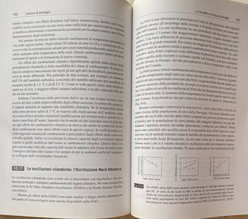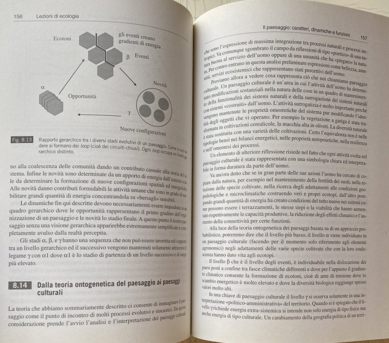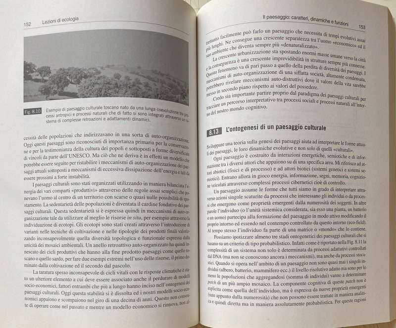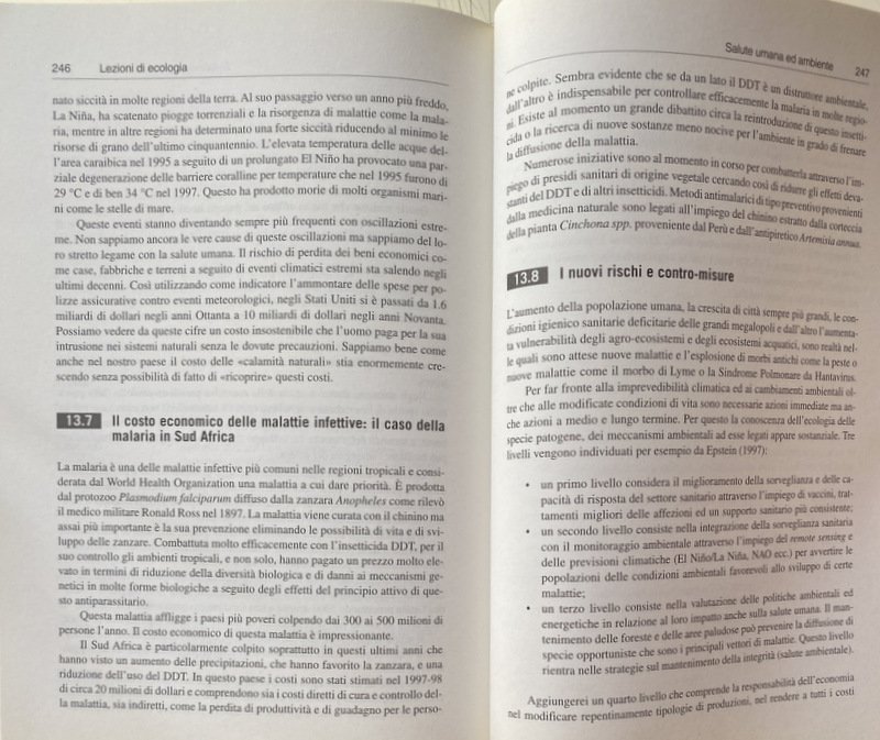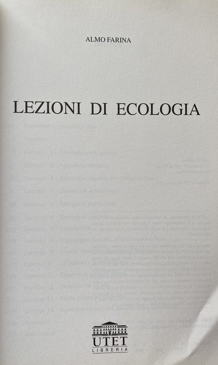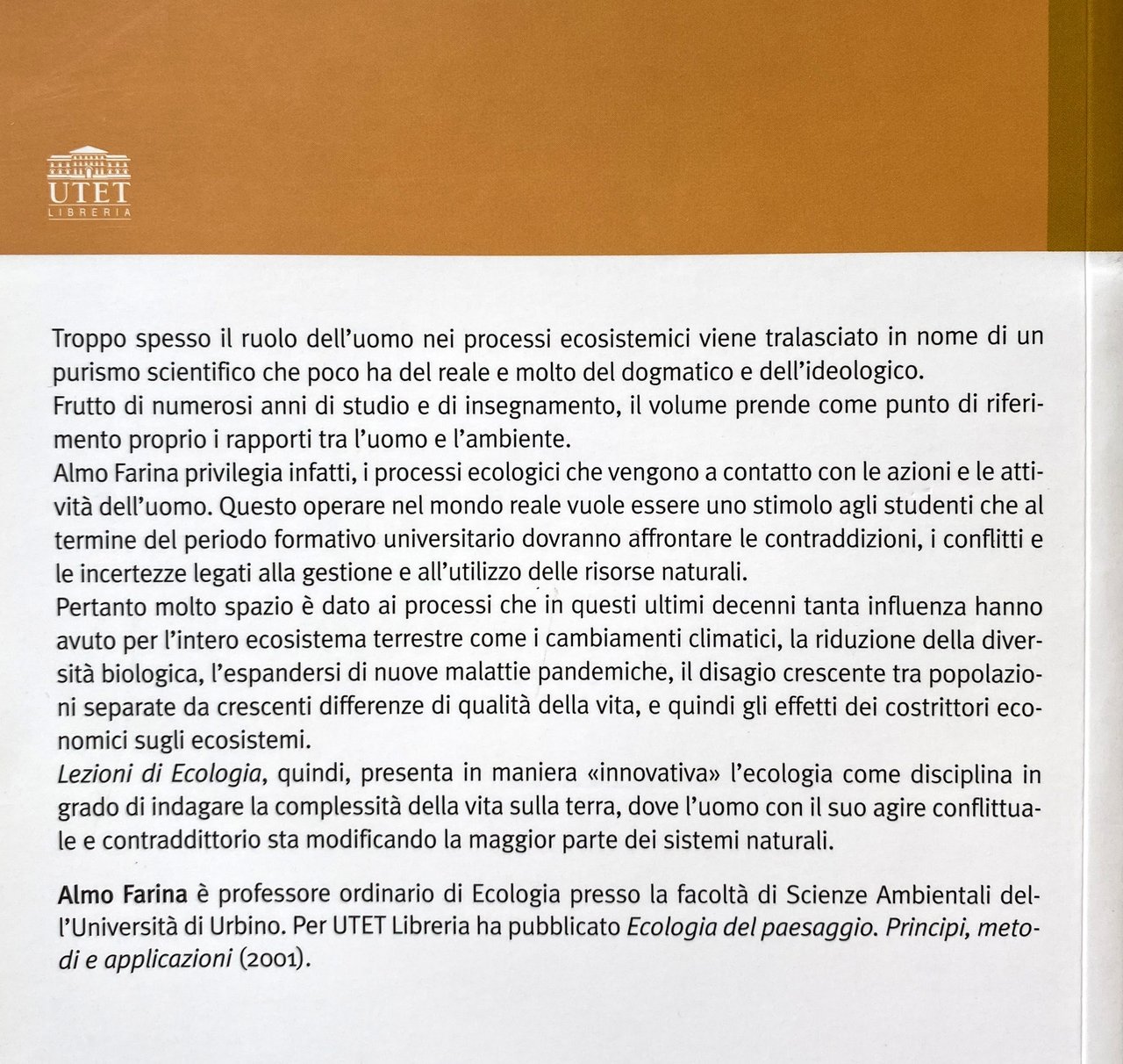 Soggetti: Manuali, Scienza, Tecnica, Ambiente, Ecosistema, Ecologia, Paesaggistica, Paesaggio, Tutela ambientale, Testi universitari, Lezioni, Scienze Ambientali, Biodiversità, Pianeta, Clima, Cambiamento climatico, Attività umane, Inquinamento, Ernst Haeckel, Charles Darwin, Teoria dei Sistemi, Cibernetica, Dinamica, Eco-field, Atmosfera, Combustibili fossili, idrocarburi, Malattie, Pandemie, Virus, Animali, Piante, Natura, Geografia, territorio, Risorge energetiche, Capitalismo, Globalizzazione, Sfruttamento, Agricoltura, Allevamenti intensivi, Acqua, Energia, Demografia, Geoeconomia, Spazio, Ricchezza, Metropoli, Megalopoli, Sostenibilità, Verde, Anidride carbonica, Smaltimento, Rifiuti tossici, Scorie, Nucleare, Sole, Temperature, Statistiche, Qualità di vita, Distribuzione, Sviluppo sostenibile, Tecnologie, Biosfera, Biologia, Geometria spaziale, Telerilevamento, Sociologia, Economia, Storia, Archeologia, Antropologia, Psicologia ecologica, Silvicoltura, Agronomia, Architettura, Pianificazione, Habitat, Complessità, Teorie ecologiche, Disturbo, Comportamento, Convivenza, Popolazione, Suolo, Glossario, Letteratura scientifica, Riferimento, Bibliografia, Libri Vintage fuori catalogo, Studi, Risparmio energetico, Rivoluzione ambientale, Paradigmi, Modelli, Foot print, Climax, Cultivar, Noosfera, Gariga, Guild, Macchia Mediterranea, Boschi, Foreste, PH, Resilienza, Olistica, Riscaldamento, Celle di Bernard, Coalescenza, Evenness, Produttività, Uccelli, Specie, Paesaggi culturali, Terrazzamenti, Stocastica, Ecotopi, Estinzione, Cibo, Alimentazione, Feromoni, Equilibrio, Catena alimentare, Predatori, Parassiti, Evoluzione, Adattamento, Selezione naturale, Collaborazione, Cooperazione, Mutualismo, Simbiosi, Interazioni, Ontogenesi, UNESCO, Patrimonio, Protezione, Biota, Gaia, Università, Generelle Morphologie, Whittaker, D. Tilman, Source-Sink, Biomassa, Fertilizzazione, DNA, Ontogenetica, Urbanizzazione, Ontogenesi, Gerarchie, James Lovelock, Azoto, Ossigeno, Gas serra, Oscillazione Nord Atlantica, NAO, El Nino, Correnti, ENSO, Azzorre, Anticiclone, Ottersen, Co2, Zanzare, Malaria, Africa, DDT, Barrett, Blondel, J.H. Brown, R. Costanza, R.T.T. Forman, D. Rapport, Materia, Impollinazione, Api, Predazione, Batteri, Fotosintesi, Mortalità, Natalità, Nicchia, Humboldt, Carl Troll, Neil Campbell, E. Laszlo, R. Levins, I. Prigogine, Eugene P. Odum, Storia ambientale, Ambientalismo, Autoecologia, Antropizzazione, Textbooks, Science, Technique, Environment, Ecosystem, Ecology, Landscape, Landscape, Environmental Protection, University Textbooks, Lessons, Environmental Sciences, Biodiversity, Planet, Climate Change, Human Activities, Pollution, Systems Theory, Cybernetics, Dynamics, Atmosphere, Fossil Fuels, Hydrocarbons, Diseases, Pandemics, Animals, Plants, Nature, Geography, Territory, Energy Resources, Capitalism, Globalization, Exploitation, Agriculture, Intensive farming, Water, Energy, Demography, Geoeconomy, Space, Wealth, Metropolis, Megalopolis, Sustainability, Green, Carbon dioxide, Disposal, Toxic waste, Waste, Nuclear, Sun, Temperatures, Statistics, Quality of life, Distribution, Sustainable development, Technologies, Biosphere, Biology, Spatial geometry, Remote sensing, Sociology, Economy, History, Archaeology, Anthropology, Ecological psychology, Forestry, Agronomy, Architecture, Planning, Complexity, Ecological theories, Disorder, Behaviour, Coexistence, Population, Soil, Glossary, Scientific literature, Reference, Bibliography, Books out of print, Studies, Energy saving, Environmental revolution, Paradigms, Models, Cultivars, Noosphere, Mediterranean scrubland, Woods, Forests, Resilience, Holistic, Heating, Cells, Coalescence, Productivity, Birds, Species, Cultural landscapes, Terraces, Stochastics, Ecotopes, Extinction, Food, Nutrition, Pheromones, Balance, Food chain, Predators, Parasites, Evolution, Adaptation, Natural selection, Collaboration, Cooperation, Mutualism, Symbiosis, Interactions, Ontogeny, Heritage, Protection, University, Biomass, Fertilization, Ontogenetics, Urbanization, Ontogenesis, Hierarchies, Nitrogen, Oxygen, Greenhouse gases, North Atlantic Oscillation, Currents, Azores, Anticyclone, Ottersen, Mosquitoes, Matter, Pollination, Bees, Predation, Bacteria, Photosynthesis, Mortality, Birth rate, Niche, Environmental history, Environmentalism, Autoecology, Anthropization