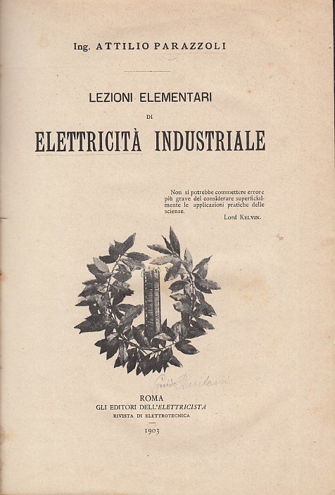 Lezioni elementari di elettricità industriale | Libros antiguos y modernos | Parazzoli Attilio