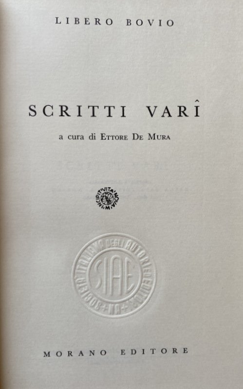 LIBERO BOVIO POESIE E CANZONI, TEATRO, SCRITTI VARI. (VOLUMI 1, 2, 3,) OPERE COMPLETE. A CURA DI ETTORE DE MURA