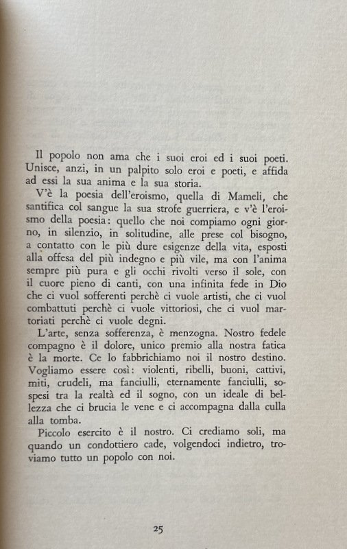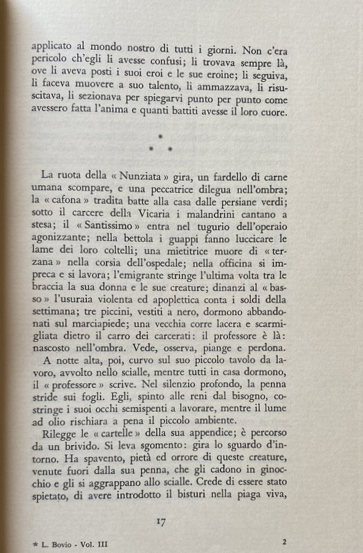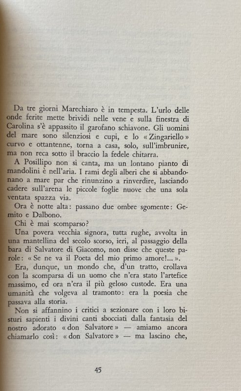 «Curò le ultime bozze e chinò il capo sugli scritti. Fu la individuazione di questo popolo napoletano: lavorare e sognare, soffrire pazientemente e morire. S'intendevano l'un l'altro; egli aveva visitato l'ultimo tugurio, e il popolo si riconosceva in lui. In altro paese sarebbe divenuto ricco; ma l'Italia, povera come lui, non merita rimprovero».