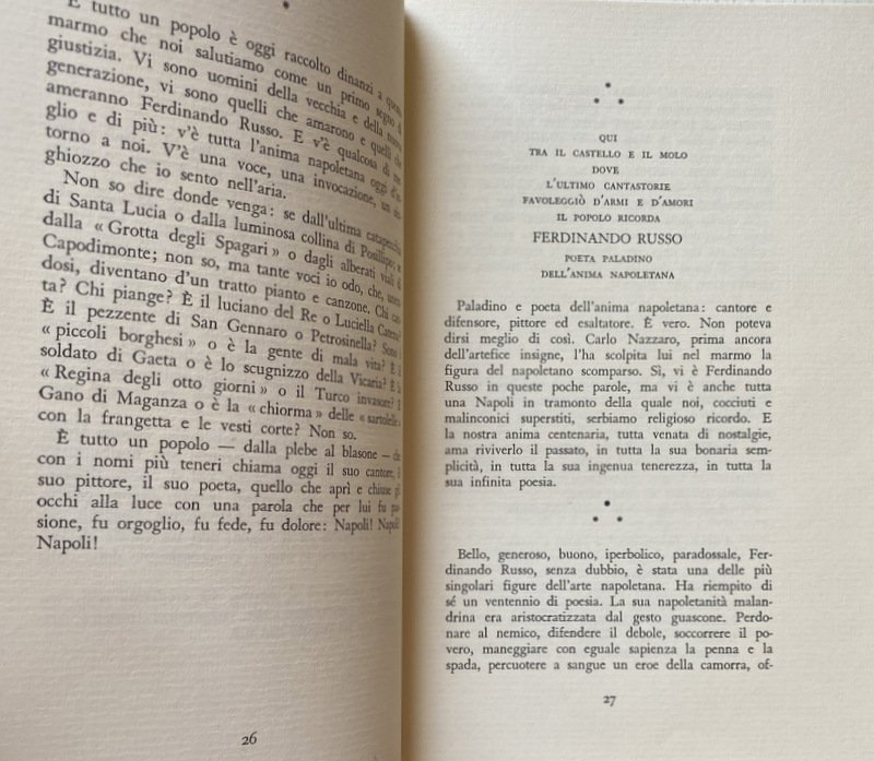 Soggetti: Canzone classica napoletana, Poesia sentimentale, Poesie, Canzoni, Teatro dialettale, Piedigrotta, Surdate, Salvatore Di Giacomo, Ferdinando Russo, Nicola Mancini, Francesco Buongiovanni, Pulecenella, 'O Prufessore, Mala nova, 'O macchiettista, Casa antica, Opere generali, Bibliografia, Riferimento, Cofanetto, Collezionismo, Raccolte, Antologie, Drammaturgia, Drammi, Scene, Atti, Dialetto napoletano, Classici, Edizioni rare pregiate, Libri Vintage fuori catalogo, Luigi Pierro, Enrico Fiore, Tabarè, Malincunia, Fattura, Primmavera, 'E Rrose, Assunta, Torna Natale, Vespero, Fortuna, La forza del destino, Peppe Catena, Tarantella luciana, Carufanella, Pusilleco, Posillipo, Napoli, Lacreme napulitane, Mandulinata, Reginella, Carulì, Zappatore, Serenata, Dramma, Tragedia, Vicenzella, Nanninella, Pignasecca, Mergellina, Santa Lucia, Spirto gentil, San Ferdinando, San Carlo, Intellettuali napoletani, Dialetti, Discorsi, Scritti, Carlo Nazzaro, Francesco Mastriani, Vicaria, Centro storico, Cultura popolare, Porta Capuana, Sanità, Carbonara, Ruota, Nunziata, Salvatore Gambardella, Giovanni Capurro, Carduccianelle, Recensioni, Critica teatrale, Ritratti, Biografie, Memorie, Appunti, Micco Tonno De Lia, Mascagni, Bozzetti, Disegni, Musica, Caricature, Schizzi, Eduardo Di Capua, Rocco Galdieri, Elvira Donnarumma, Vincenzo Cardarelli, Vincenzo Migliaro, Ernesto Murolo, Don Liberato, Novelle, Amleto, Raffaella De Vita, Tradizione orale, Pasquale Scialò, Pensieri, Aforismi, Proverbi, Aneddoti, Battute, Confessioni, Paradossi, Maleparole, Modi di dire, So' dieci' anne, Maestro, Ottocento, Novecento, Maria Rosaria Capasso, Varietà, Spettacolo, Café Chantant, Pompeo Calvia, Testi teatrali, Scenografia, Sceneggiatura, Protagonisti, Balletto, Liriche, Poetica, Romanticismo, Costumi, Maschere, E. A. Mario, Luciano Somma, Adriano Tilgher, Epoca d'oro, Bassi, Popolo, Nobiltà, Sona chitarra, Tarantella luciana, Carufanella, Guapparia, Nonna, Tu ca nun chiagne, Fronn' 'e cerase, Brinneso, Silenzio cantatore, Chiove, 'O paese d''o sole, Scugnizza, Guappo song'io, Passione, Successi, Capolavori, Emigranti, America, Famiglia, Amore, Gianfranco Plenizio, La Canzonetta, Evemero Nardella, Ernesto De Curtis, Gaetano Lama, Ernesto Tagliaferri, Nicola Valente, Gente nosta, via Duomo 45, Sciantosa, Figure femminili, Donne, Tammurriata, Sceneggiata, Eduardo Scarpetta, Giovanni Verga, Verismo, Letteratura, Giuseppe Villaroel, Tammurriate, Tamburello, Signorinella, Vincenzo Talarico, Vittorio Paliotti, Vittorio De Sica, Mamma, Anni Settanta, Mercadante, Montecalvario, Sannazaro, Vernacolo, Luigi Capuana, Anni Trenta, Anni Quaranta, Vita quotidiana, Addio a Maria, Repertorio, Pièces, Pochades, Vaudeville, Je so' napulitano e si nun canto moro!, Gianni Infusino, Vittoria Colonna, Comico, Comicità, Commedie, Parole, Cerasella, Carmela, Colombina, Gennarino, Gaetano, Rosina, Mariuccia, Parascandolo, Serafina, uocchie, Enciclopedia, Werke, Musik, Pasquale Ruocco, Ottavio Nicolardi, Orazioni, Commemorazioni, Toledo, Marechiaro, Mandolino, Enrico Cannio, Studi letterari, Busciarda me vuò bene, Eden, Umberto, Trianon, Bideri, Poliphon, Gennarelli, Etichette discografiche, Aniello Califano, Artisti, Festival, Melodici, Misteri, Classical Neapolitan song, Sentimental poetry, Poems, Songs, Theater in dialect, Casa antica, General works, Bibliography, Reference, Box set, Collectables, Collections, Anthologies, Dramaturgy, Dramas, Scenes, Acts, Neapolitan dialect, Classics, Precious rare editions, Out-of-print books, Naples, Serenade, Drama, Tragedy, Neapolitan intellectuals, Dialects, Speeches, Writings, Historic centre, Popular culture, Wheel, Reviews, Theater criticism, Portraits, Biographies, Memoirs, Notes, Sketches, Drawings, Music, Caricatures, Sketches, Short stories, Hamlet, Oral tradition, Thoughts, Aphorisms, Proverbs, Anecdotes, Jokes, Confessions, Paradoxes, Idioms, Master, 19th century, 20th century, Variety, Show, Theatrical texts, Scenography, Screenplay, Protagonists, Ballet, Lyrics, Poetics, Romanticism, Costumes, Masks, Golden age, People, Nobility, Play Guitar, Passion, Successes, Masterpieces, Emigrants, Family, Love, Female figures, Women, Literature, Tambourine, Seventies, Vernacular, Thirties, Forties, Daily life, Repertoire, Comic, Comedy, Comedies, Words, Encyclopaedia, Orations, Commemorations, Mandolin, Literary studies, Record labels, Artists, Melodics, Mysteries
