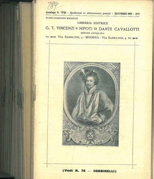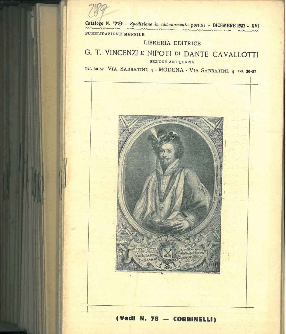 Libreria editrice G. T. Vincenzi e nipoti di Dante Cavallotti. Cataloghi n. 79-106, 108, 109, 116, 117, 119, 120, 125, 126-132 (dal 1937 al 1942)