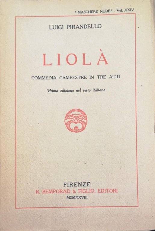 LIOLÀ. COMMEDIA CAMPESTRE IN TRE ATTI. - Fa parte di Maschere Nude, teatro di Luigi Pirandello.