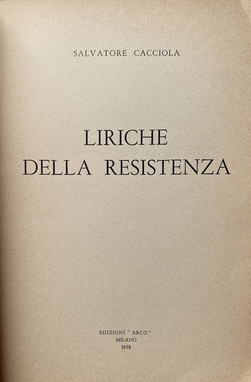 LIRICHE DELLA RESISTENZA | Libros antiguos y modernos | Salvatore Cacciola