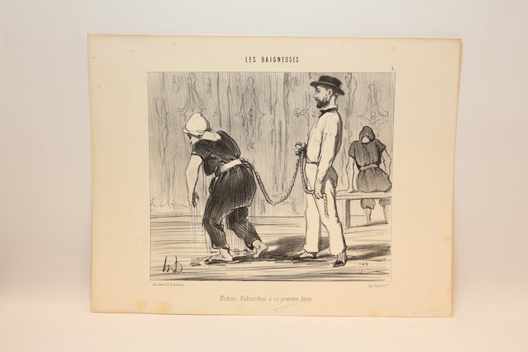 Lithographie originale en noir et blanc - Les Baigneurs - Madame Rabourdeau à sa première leçon