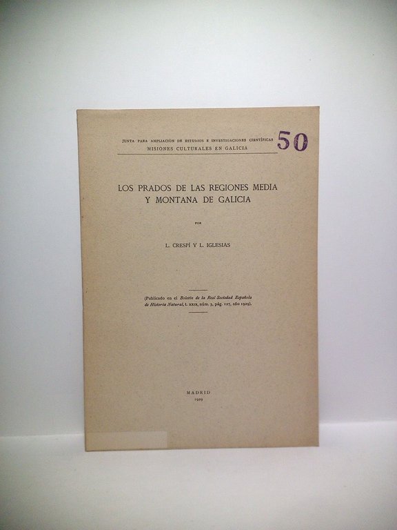 Madrid: [R. Soc. Española de Historia Natural], 1929.- P. 127-142 (en total 16 p.); 4º (24 cm.).- (Junta para la Ampliación de Estudios e Investigaciones Científicas: Misiones Culturales en Galicia). ( Sep. del Boletin de la R. Soc. Española de Historia Natural. Tomo 29, Nº 3, pag. 127, año 1929).* Un sello tampón en la cubierta anterior con el número 50, y una pequeña pegatina el pie de la misma tapando una signatura. ECONOMÍA AGRARIA, AGRARISMO, MONTES, GANADERÍA E INDUSTRIA PESQUERA