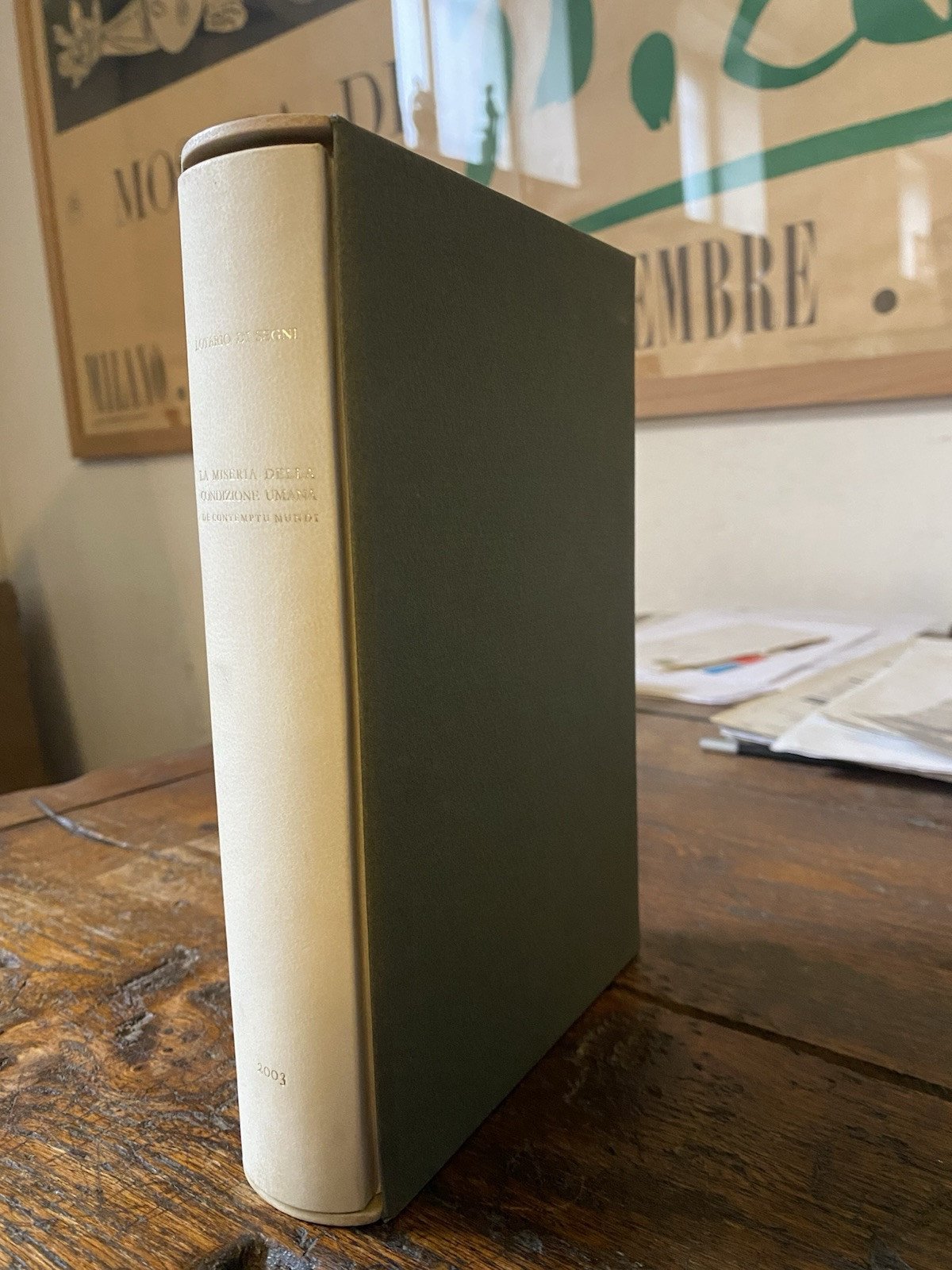 De Contemptu Mundi Testo Italiano/Latino In 8° legatura editoriale 1/2 pergamena cofanetto pp. 336 I° edizione Con un ritratto dell'autore all'antiporta Ottimo stato