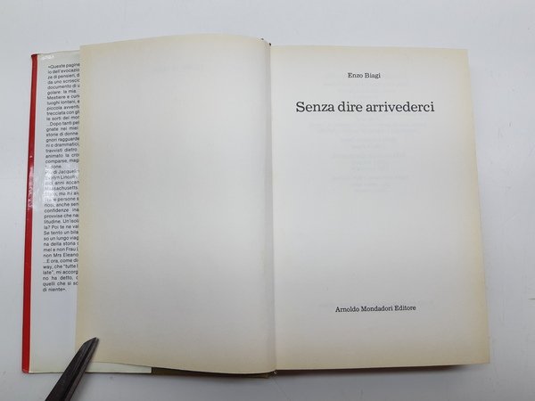Senza dire arrivederci Mondadori 1∞ edizione 1985: sovraccoperta editoriale in buone condizioni, lievi segni del tempo ai margini dei piatti e del dorso, etichetta di catalogazione al dorso, legatura rigida in tela con titoli in oro al dorso, lievissima scoloritura al margine inferiore del piatto anteriore, alla seconda di copertina ex-libris, lievissime fioriture alle pagine interne in particolar modo presenti alle prime ed ultime pagine bianche