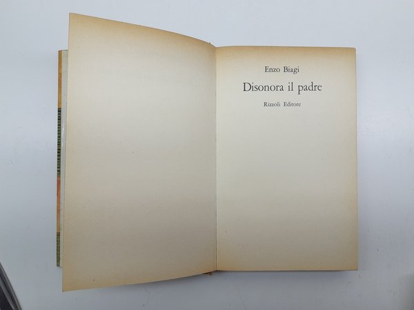 Disonora il padre Rizzoli 3∞ edizione 1975: sovraccoperta editoriale in buone condizioni, lievi segni del tempo etichetta di catalogazione al dorso, legatura rigida in cartonato editoriale con titolo al dorso, tagli bruniti con fioriture diffuse, alla seconda di copertina ex libris, interno in discreto stato brunitura al margine superiore delle pagine vedere immagini