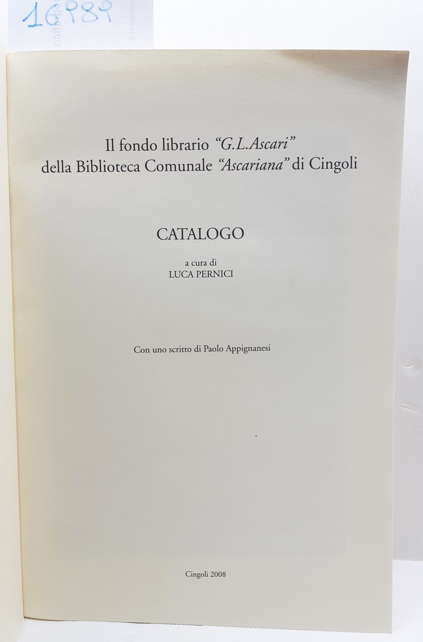 Luca Pernici Il fondo librario Giovanni Ludovico Ascari della biblioteca comunale Ascariana di Cingoli 2008