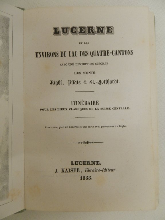 Lucerne et les environs du lac des quatre-cantons. Avec une description special des Monts Righi, Pilate & St. Gotthardt. Avec vues, plan de Lucerne et une carte avec panoramas du Righi.