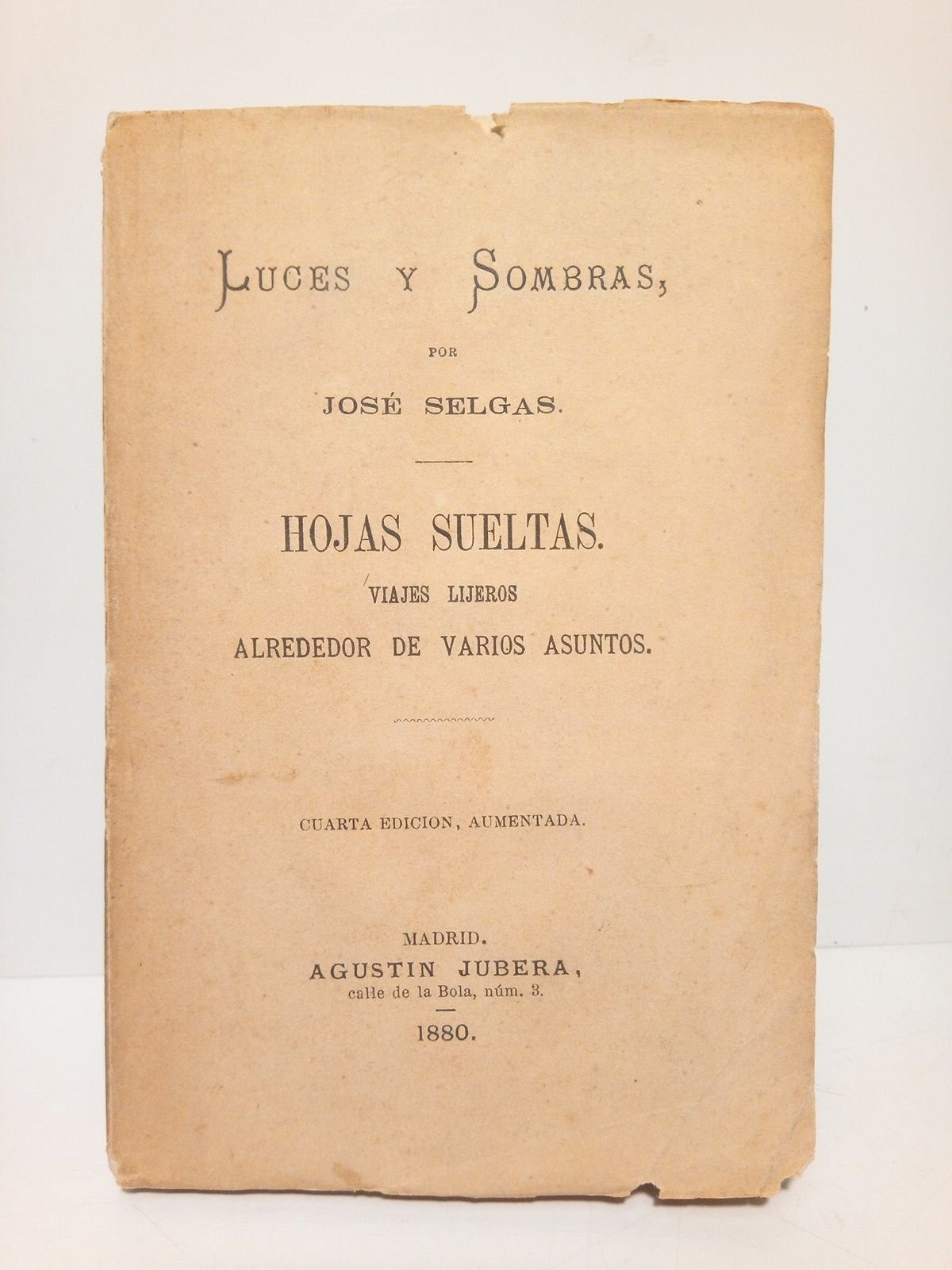 4ª Ed., aumentada.- Madrid: Agustín de Jubera, 1880.- VIII,250 p.; 8º menor (16,3 x 11 cm); Intonso, conservando íntegros sus márgenes; Rústica Ed.* Mínimas faltas en la cabeza y pie del lomo. La cubierta anterior con mínimas faltas en sus bordes. Interior perfecto. LITERATURA Y FILOSOFÍA ESPAÑOLAS DE LOS SIGLOS XIX-XXI Y SU HISTORIA EN GENERAL