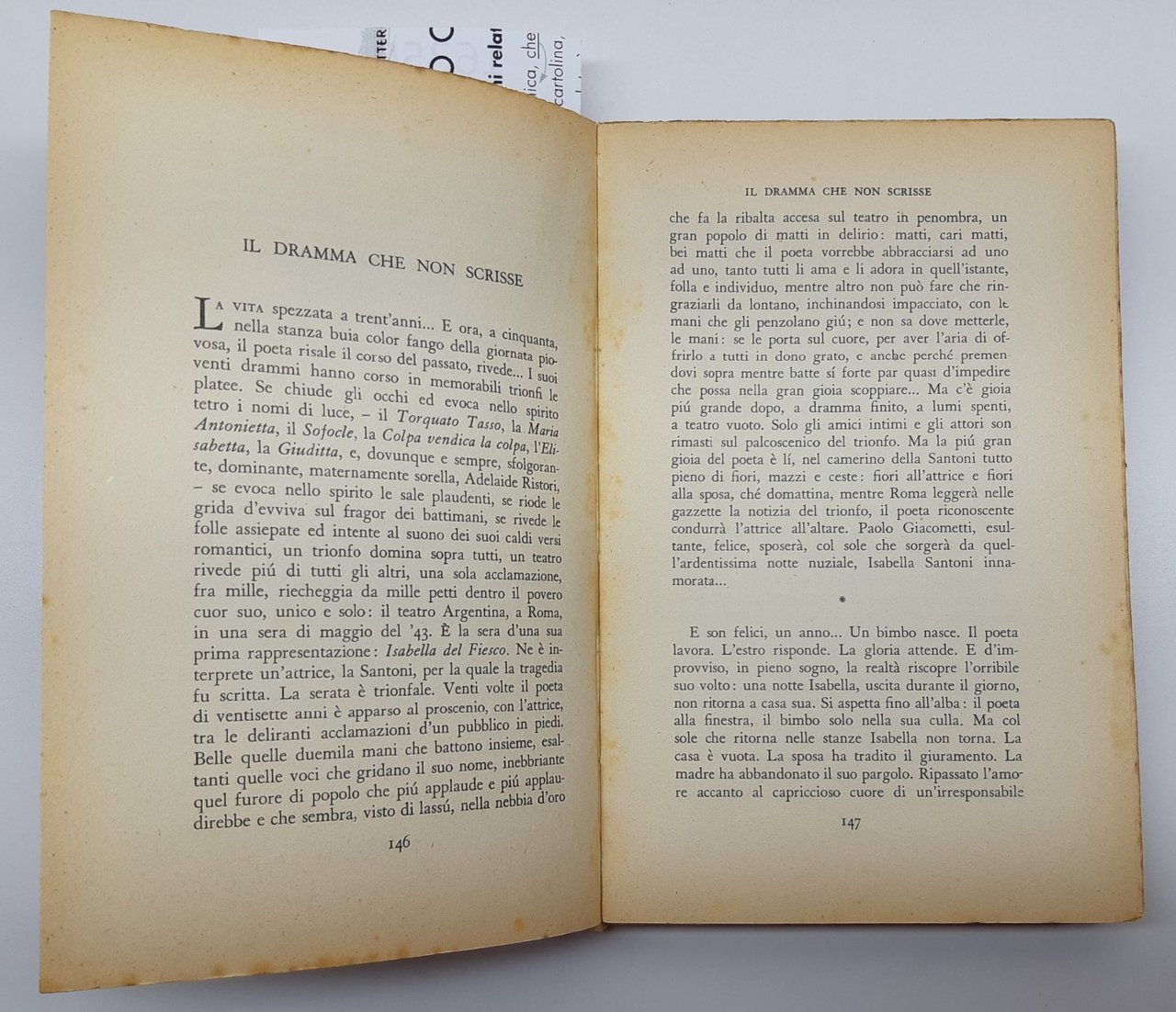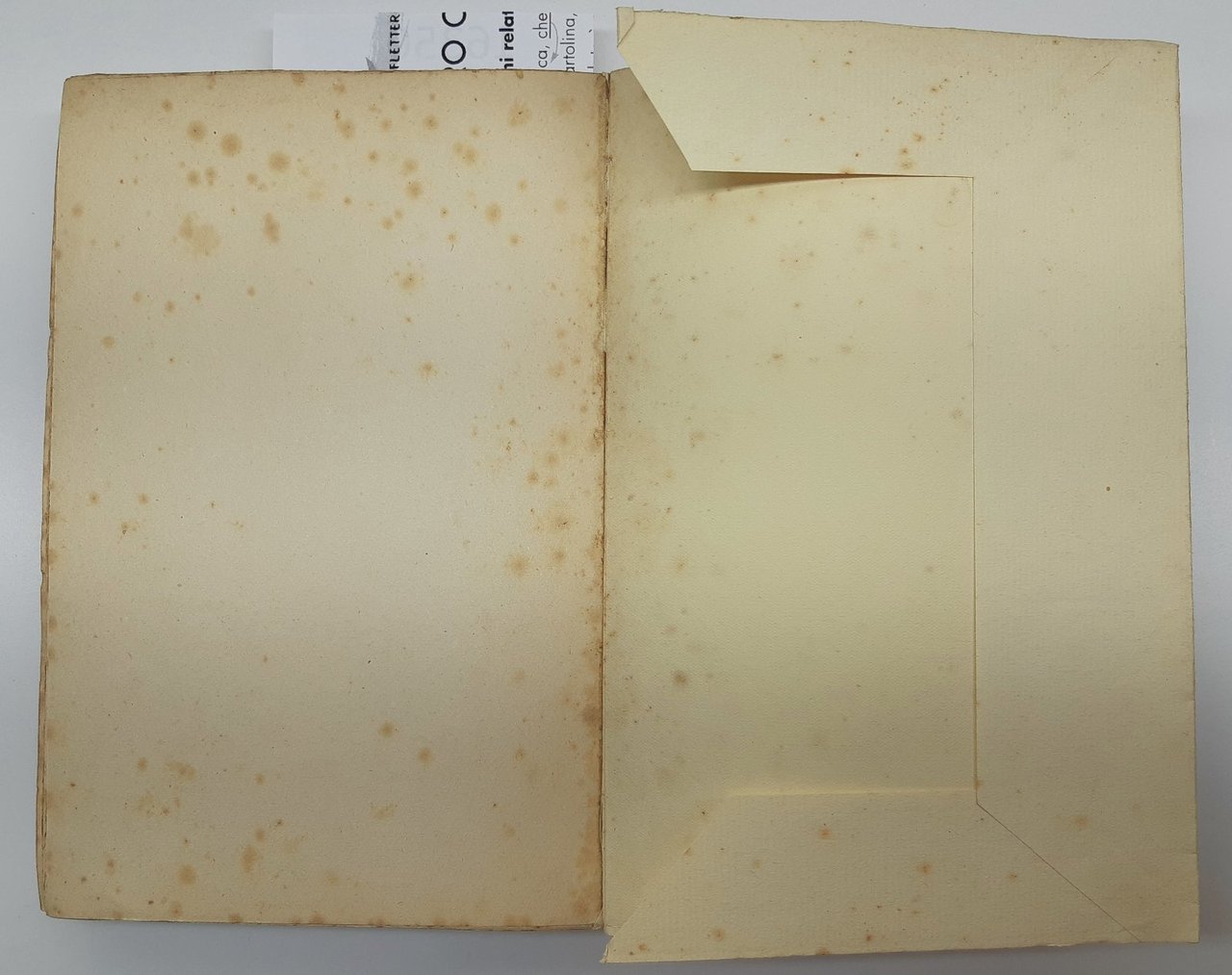 legatura editoriale morbida con leggere fioriture diffuse, protetta da sovraccoperta incollata ai risvolti interni. Fioriture maggiormente diffuse alle prime e ultime pagine, tagli irregolari bruniti e con fioriture n. pagine 321 cm 19 x 13.