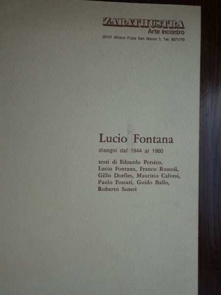 Catalogo Mostra Milano, Zarathustra Arte Incontro, gennaio - febbraio 1977, antologia di testi di Persico, Russoli, Fontana, Dorfles, Calvesi, Fossati, Ballo, Sanesi, legatura a punto metallico, formato 16x28, pagine 12, illustrato con tavole in nero, ottime condizioni - 8644